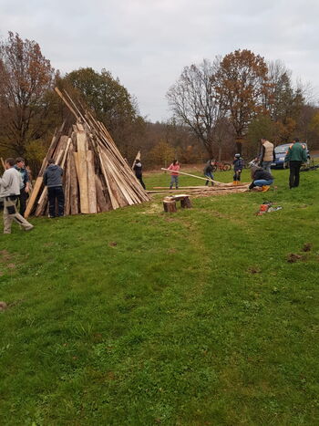 Zum Aufbau des Feuers treffen sich alle die den Kindern ein schönes Martinsfeuer
